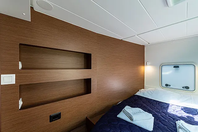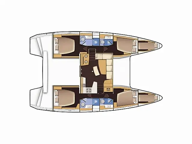| Berths: | 12 (8 people in the cabins + 2 in the saloon area + 2 in the bow cabins) |
