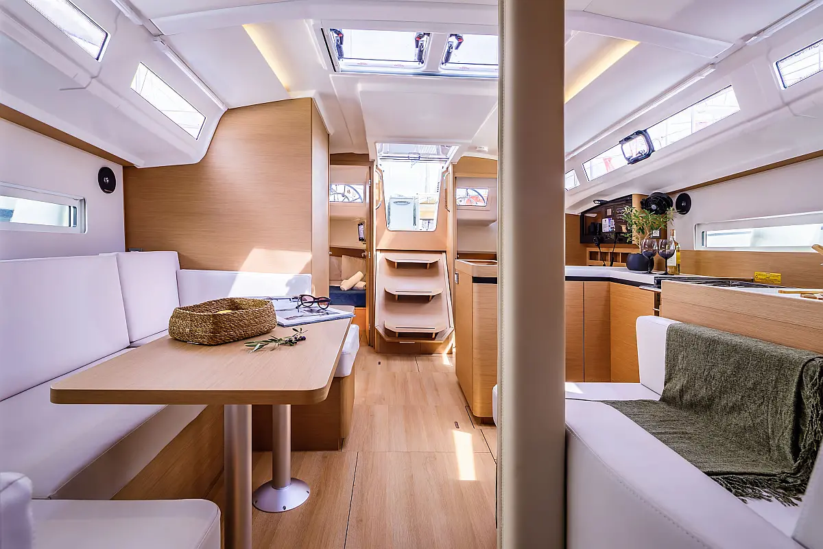Dinghy, Outboard engine, Bimini, Cockpit cushions, Sprayhood, Convertible table, Refrigerator