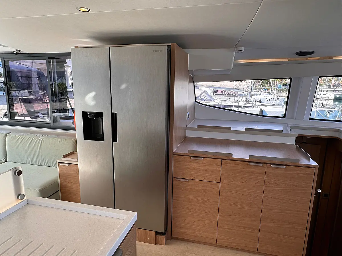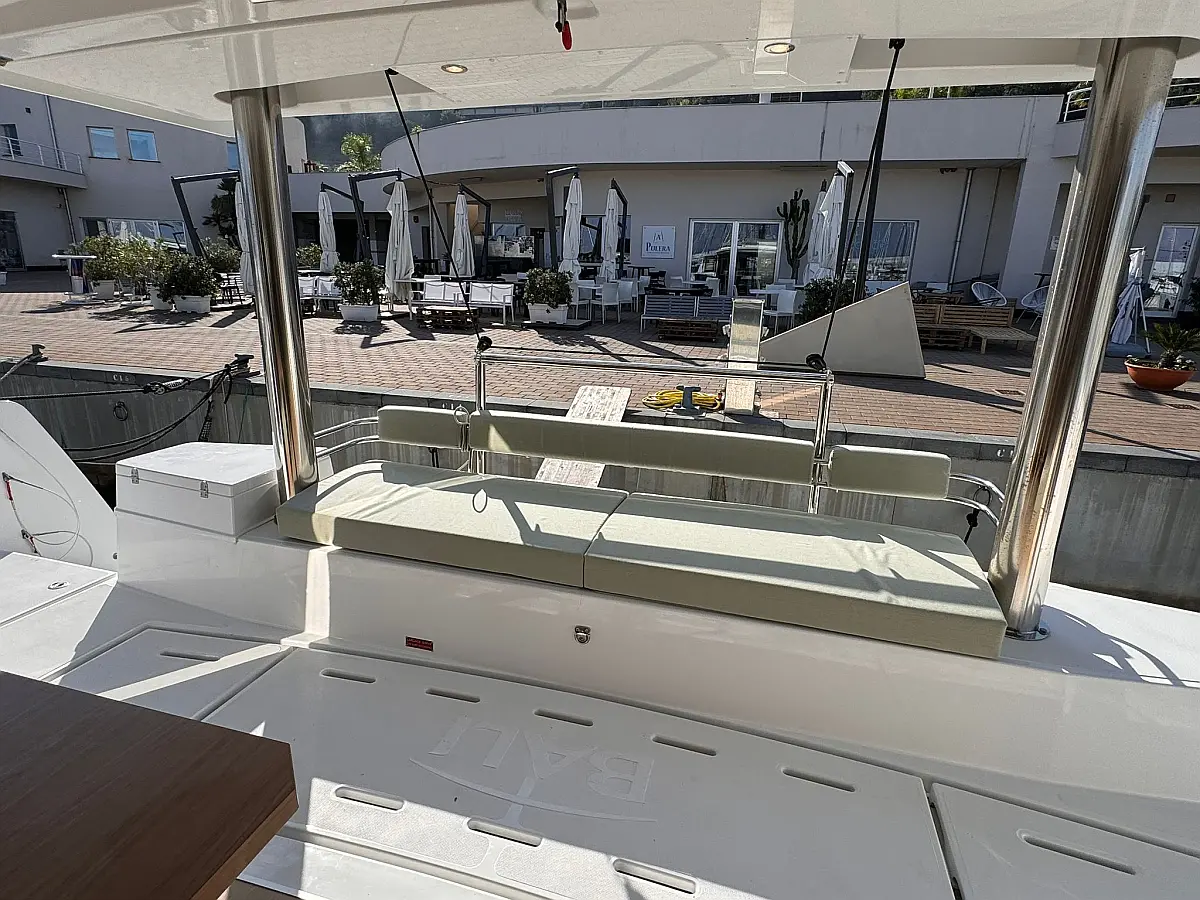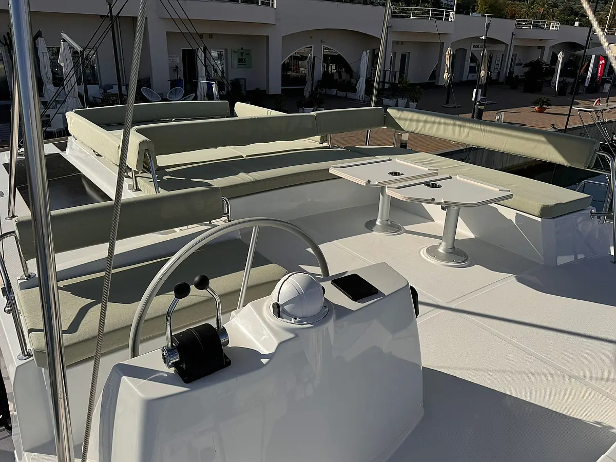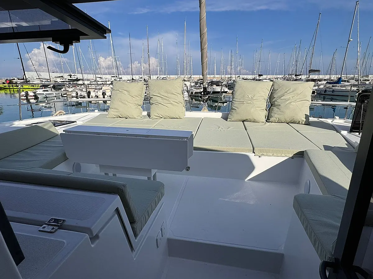 oven and 4 burner stove, Watermaker, Cockpit speakers, Radio with CD, USB, Shower outside, Barbecue, Swimming ladder, Air Conditioning Cabins, Bluetooth speakers, Cockpit cushions, Electric WC (5), Generator, Dishwasher