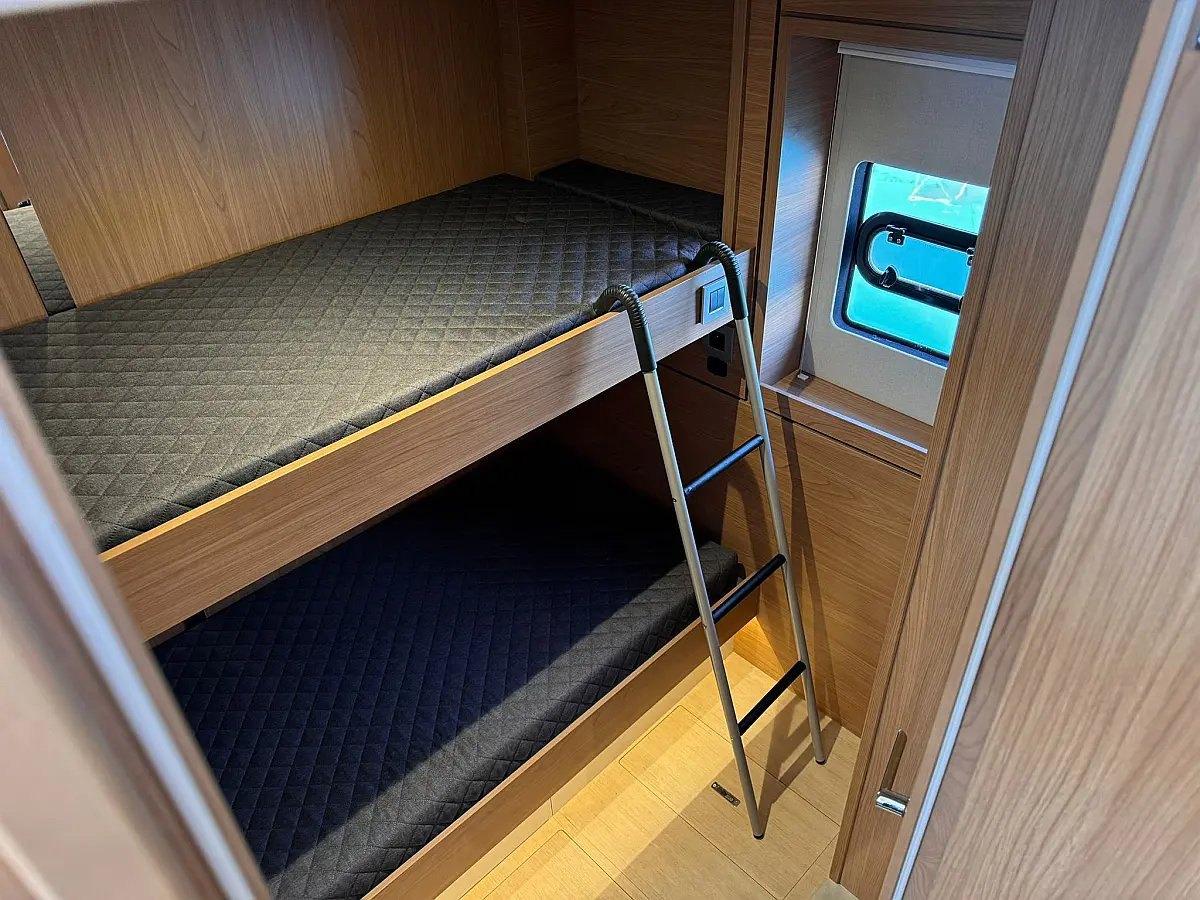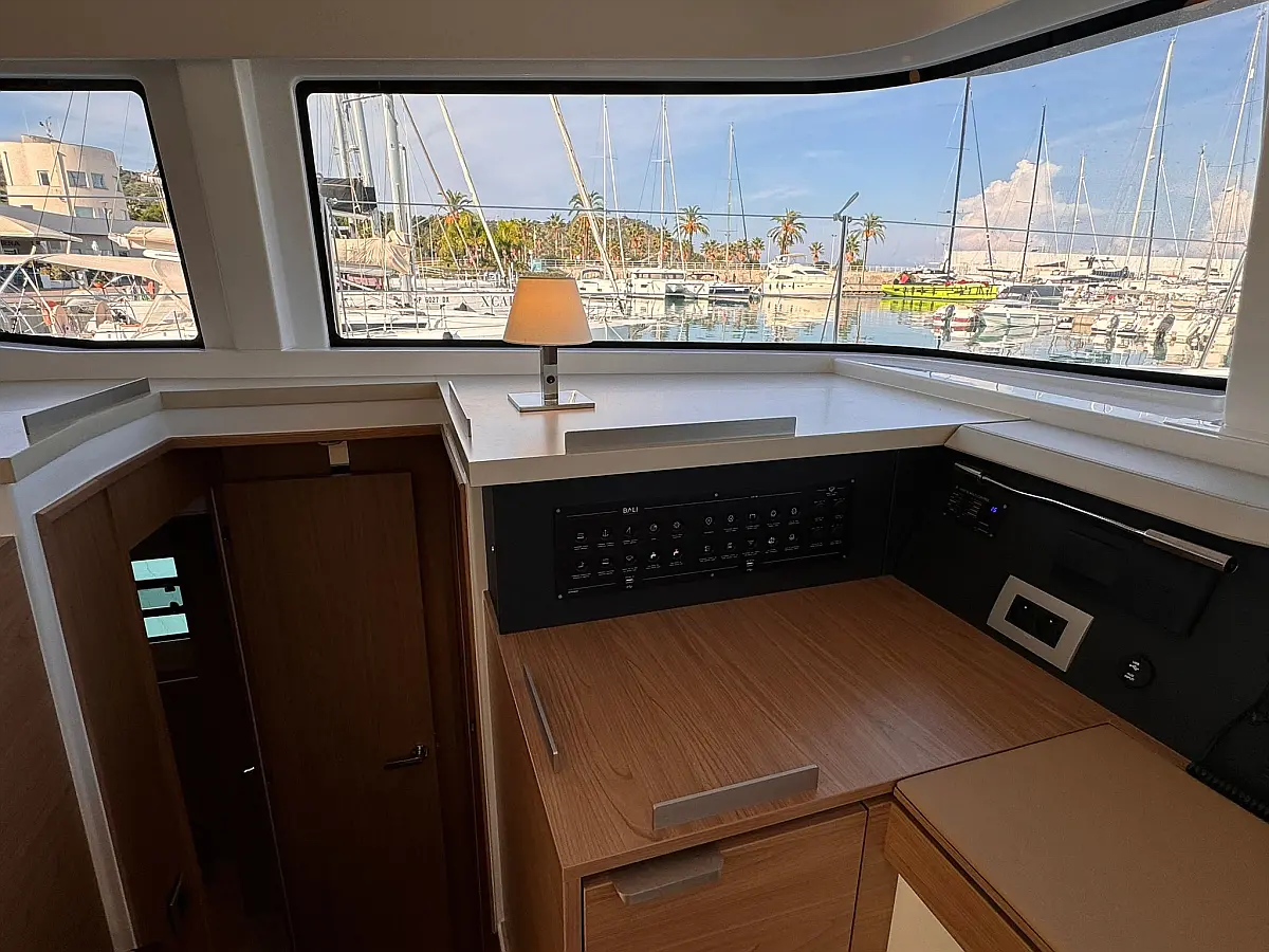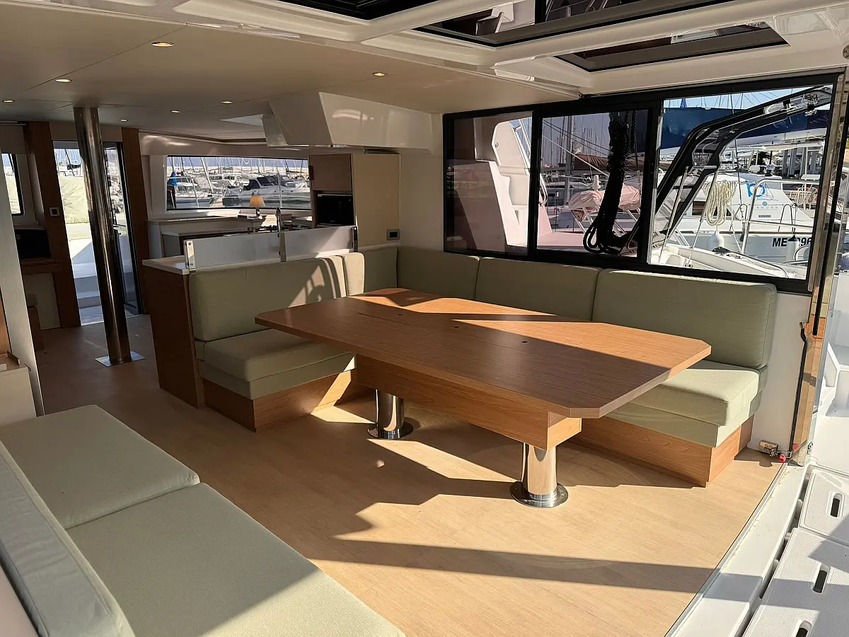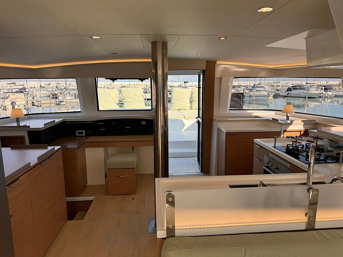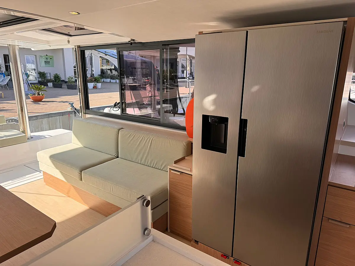 oven and 4 burner stove, Watermaker, Cockpit speakers, Radio with CD, USB, Shower outside, Barbecue, Swimming ladder, Air Conditioning Cabins, Bluetooth speakers, Cockpit cushions, Electric WC (5), Generator, Dishwasher