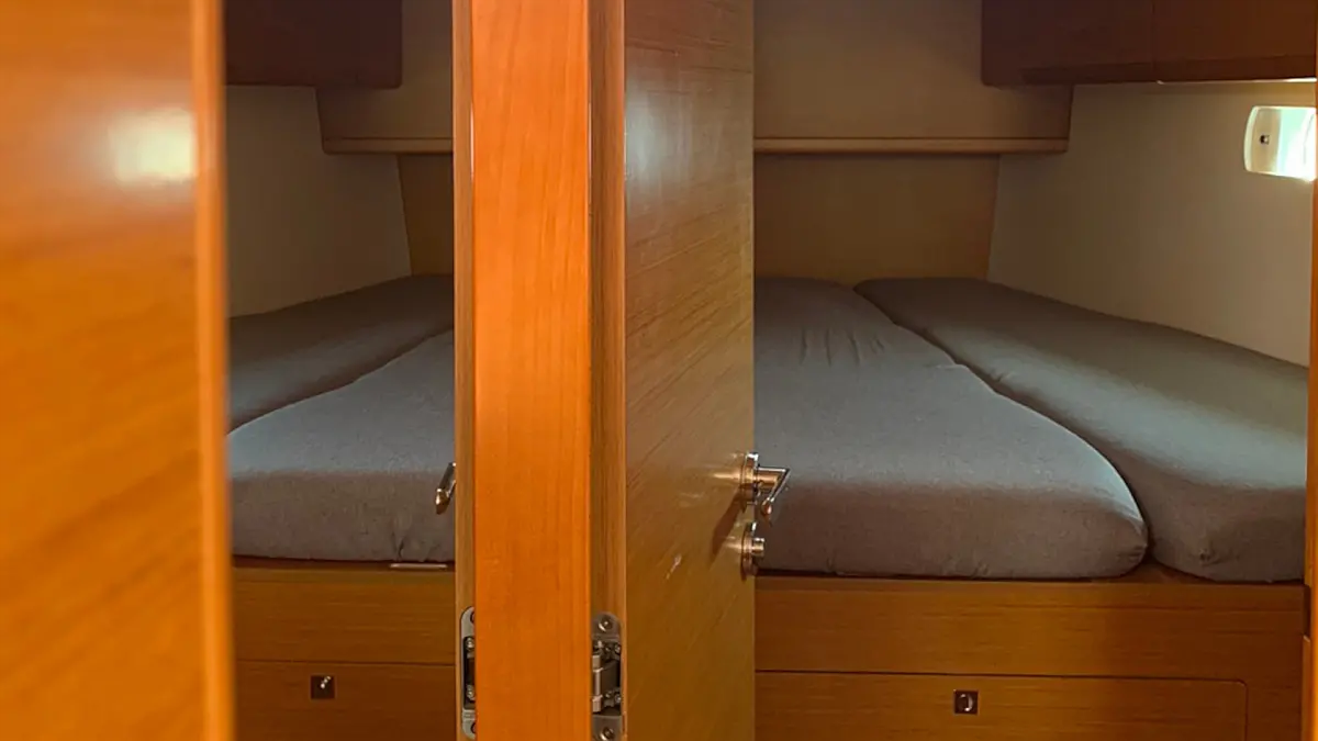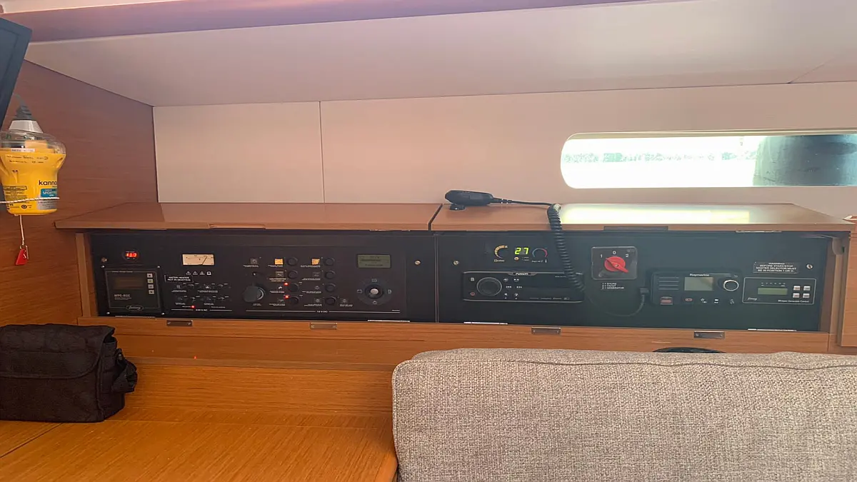Cockpit speakers, Swimming platform, Bimini, Outboard engine, Dinghy, Solar Panels, Generator, Inverter, Air condition, Electric toilet, Cockpit cushions