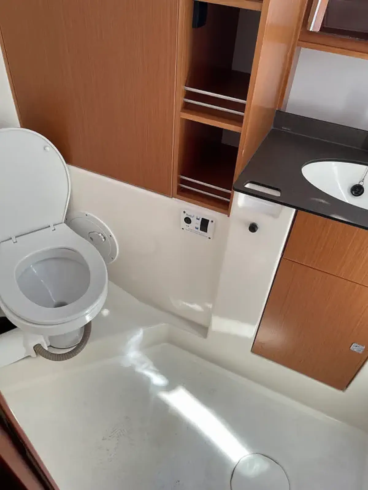 Bimini, Cockpit speakers, Holding tank, Refrigerator, Cockpit cushions, Electric toilet