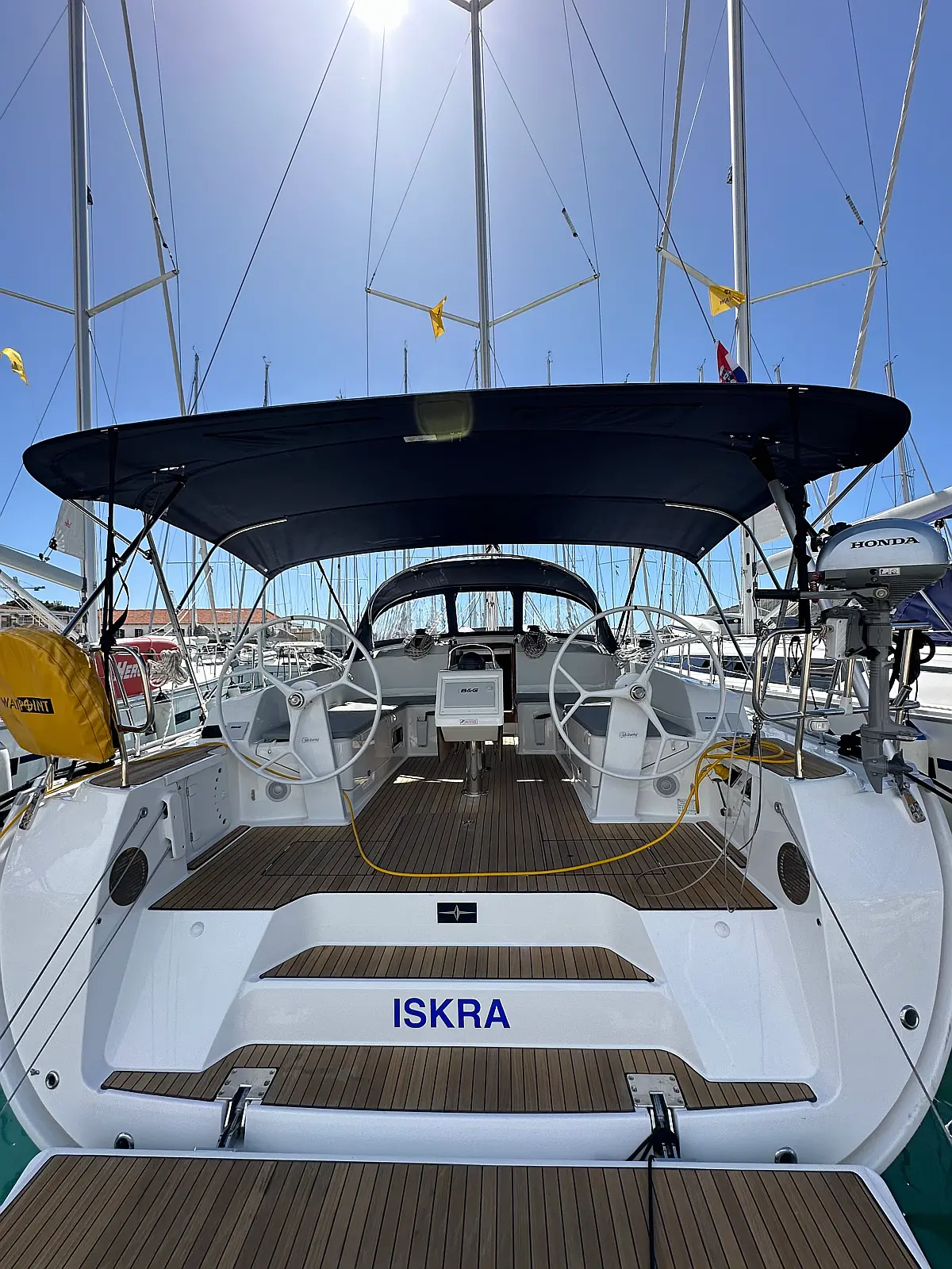 Bimini, Teak Cockpit, Electric toilet, Heating, Solar Panels, Outboard engine, Cockpit cushions